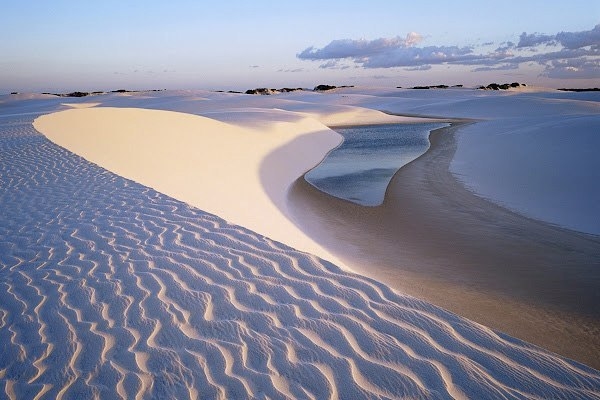 Только главное богатство этой территории — уникальная пустыня Ленсойс. Как ни странно, но в ней есть вода. Стоит заметить, что вода эта пресная. Дело все в том, что пустыня расположена недалеко от Амазонки. Поэтому зачастую тут постоянно льет дождь. Причем это не простые накрапывания, а настоящие ливни. Поэтому пески просто не успевают поглощать весь объем выпавшей воды. В связи с этим на золотых просторах пустыни образуются роскошные лагуны с теплой водой.