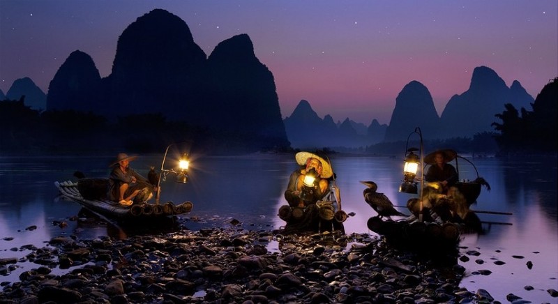 На канале "Моя планета" я смотрела программу как снимались эти фото. Юрий видел картину на традиционных китайских фресках с таким сюжетом. Основная фишка - это ручные бакланы.Рыбалка ночная. Рыба привлекается светом фонаря, а птицы ныряют и глотают рыбу, но предусмотрительные китайцы перевязываю бакланам шеи и рыбка оказывается в корзинах. Это традиционный, пришедший из глубин веков способ ловли рыбы. Юрий Пустовойтов преодолел не одну сотню километров по Китаю для того, чтобы добраться до этой провинции, где эта традиция сохранилась. В других местах подобные картины для туристов. За бакланов не переживайте хозяин следит за состоянием птицы и после рыбалки птиц кормят. Очень хотелось посмотреть эти фотографии. Спасибо Юрию за его бессонную ночь. Фотографии удивительные и настроение как в детстве, когда грезишь о дальних странах. Спасибо