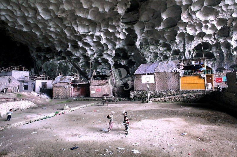 Высеченная стихией пещера стала домом для многих школьников. Пещера оборудована несколькими рукодельными конструкциями, в число которых входят деревянные классные комнаты и самодельная баскетбольная площадка, где ученики развлекаются на переменах.