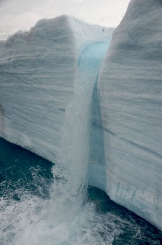 Огромные водопады в ледниках заповедника Свальбард, Норвегия