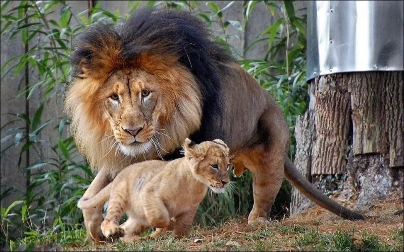 Действие происходило в Национальном Зоопарке в г.Вашингтоне. Лев играл с дочкой Люсакой. Как оказалось, маленькая хулиганка несколько раз покусала папу за хвост, провоцируя на игру, на что терпеливый лев даже не повел ухом.