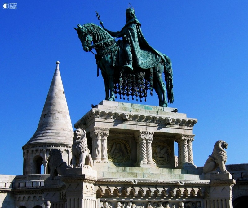 Рыбацкий Бастион построенный в нео-романском стиле, восхитительное собрание башен из белого камня, арок и колонн над бронзовой статуей святого Иштефана - первого короля Венгрии.