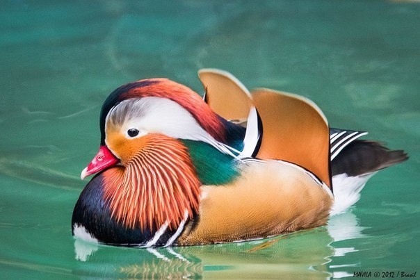 А в Америке живут древесные утки, тоже очень красивые, я как раз вчера их сравнивала, Китайские все же красивее мне кажется, из-за этих бакенбард рыжих :)
