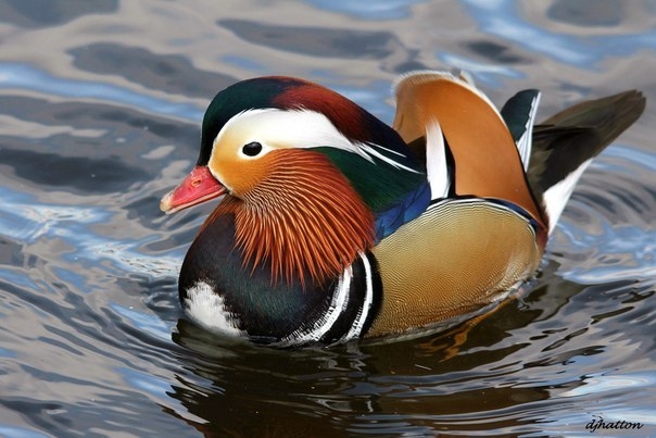 Глядя на эту уточку мне пришла в голову такая мысль. Господь создал животных и каждому дал свой окрас. Ну вот осталась одна уточка, а краски у Бога было ещё много. Чтобы краска не пропала, Всевышний отдал всю оставшуюся краску этой уточке. Вот поэтому она такая расписная.