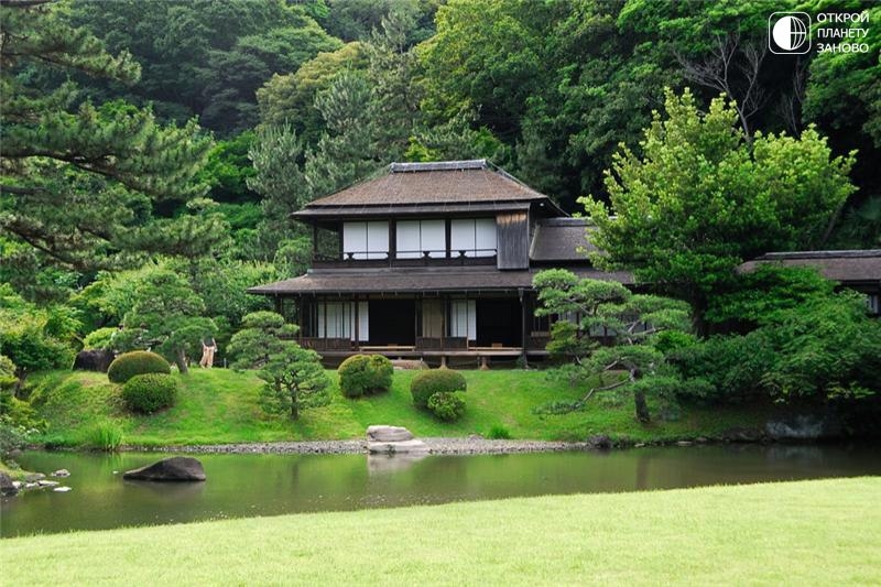 Здесь находится чайный домик Тёсюкаку, также перекочевавший сюда из Киото, и вилла известного сёгуна Токугава Ринсюнкаку, возведенная на полуострове Кии в середине XVII века. Из простых сооружений вы увидите традиционный средневековый крестьянский домик из префектуры Гифу. Особенно красив парк во время периода цветения различных растений. В конце мая здесь властвует нежная сакура и азалия, летом парк пышет роскошной зеленью, а осенью надевает печальный красно-желтый наряд. Зимой же вас поразит не только живописная припорошенность и снежная белизна, но и цветущая слива.