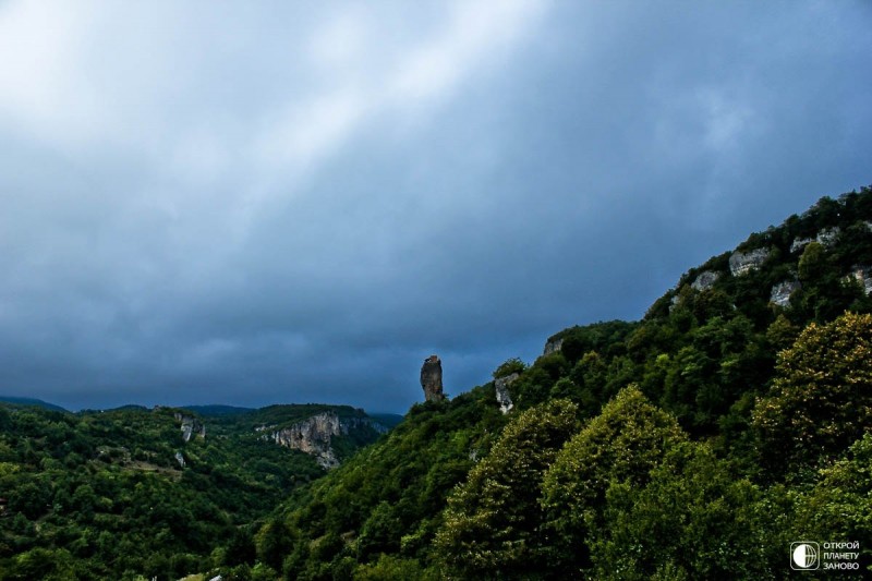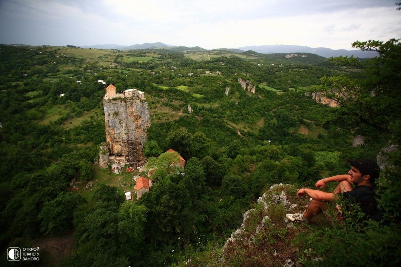 Над селом Кацхи (Чиатурский район, Грузия) возвышается каменный столп, вершину которого венчает церквушка Кацхского Спасо-Вознесенского монастыря.