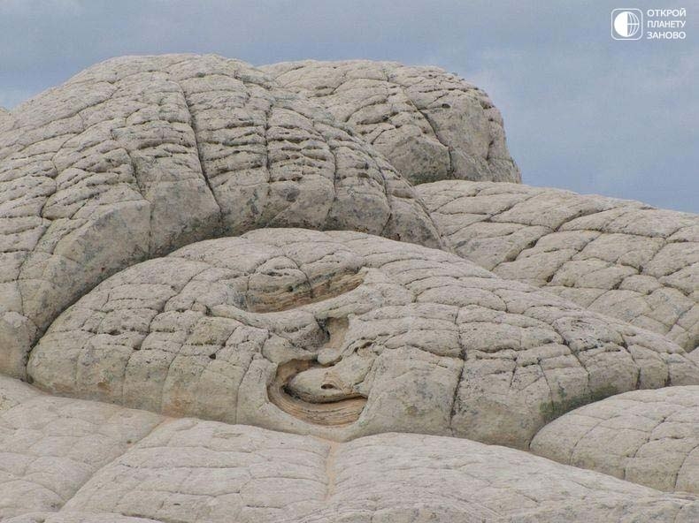 Есть на плато и признаки более современных обитателей – несколько корявых фермерских построек высоко за проволочным забором, среди сосен и можжевельника в долине Коррал. Это место не так живописно, как Уэйв, с которой, пожалуй, ничто не сможет сравниться, но и в нем есть своя строгая красота. Углубления в песчанике собирают дождевые капли, все до единой. Здесь есть низины, поросшие высохшей травой, и остатки старых оград, которые, кажется, существуют, только чтобы сдерживать передвижения перекати-поля.