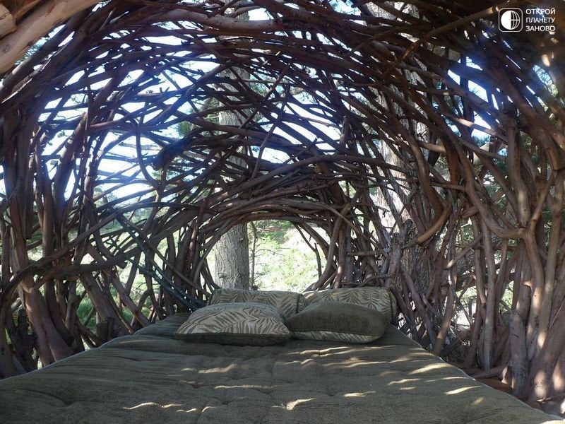 В местечке Биг-Сюр на побережье центральной Калифорнии художник обустроил целый курорт Treebones Resort, сдающий в аренду человеческие гнезда.