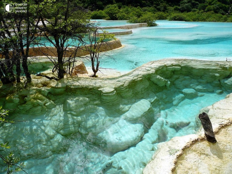 Слой активного известняка покрывает тонкий слой постоянно текущей воды. Хуанлун привлекал внимание людей еще с древних времен.