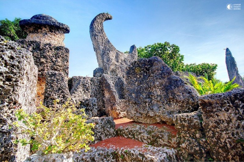 Коралловый Замок – это комплекс огромных статуй и мегалитов общим весом 1100 тонн. Как создано это сооружение – никто не знает, но и нет подтверждения, что Эдвард использовал какие-то машины или механизмы…При этом вес каменных коралловых блоков - 6 тонн - для сравнения - средний вес известняковых блоков, используемых для облицовки Великой Пирамиды в Гизе – 2,5 тонны...У Эдварда не было автомобиля, к Замку не было проведено электричество. Не выявлено следов применения при строительстве Замка цемента или бетона.