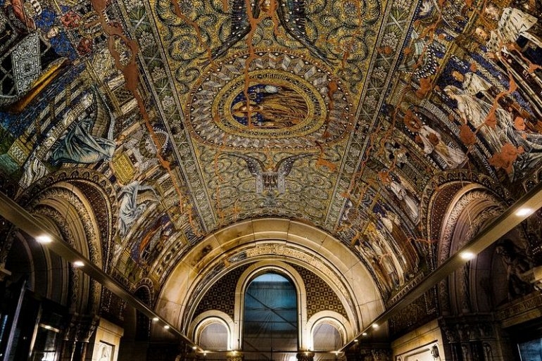 Это была одна из самых красивых церквей в тогдашней провинции Бранденбург, с изысканными декоративными интерьерами, витражами и большой мозаикой, изображающей историю Пруссии вплоть до самого императора Вильяма.