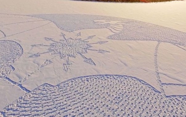 Он сделал этот рисунок для российского фильма под названием «Драконы». Саймон Бек просто ходит по снегу и создает изображение. Получается невероятно!