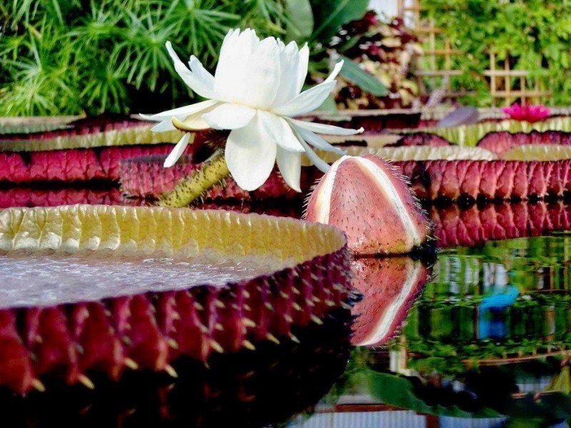 Амазония - местность в бассейне реки Амазонки в Южной Америке. Именно там растет гигантская кувшинка виктория амазонская (лат. Victoria amazonica) или виктория регия (Victoria regia - Виктория царственная) - самая большая кувшинка в мире. Диаметр ее листа может достигать 2 метров, при этом он может выдержать груз весом до нескольких десятков кг. Благодаря этим достижениям, виктория регия была занесена в Книгу рекордов Гиннеса как "Самое большое цветковое растение на земле".
